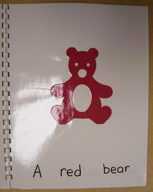 One of the Ellison die-cuts is of a bear and when you cut him out, it cuts out an oval in his tummy. Use this die-cut and cut out one bear from colored construction paper for each color that you work on. On the ovals that come from the bear's tummy, write a color word, but do not put the color word on the matching color of paper. For instance, do not write the word "red" on the red oval. Laminate. The students will match the color words with the correct color bear. |