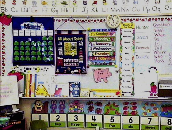 the ABCs, below the board 1 - 10. I use the chalk railing for thematic
