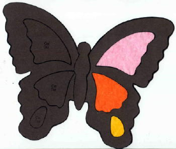 Collage Butterfly - Give each student a butterfly outline on a piece of white construction paper. Have them cover the butterfly with glue using their finger. Then add 1 inch square pieces of colored tissue paper. When dry, cut out.